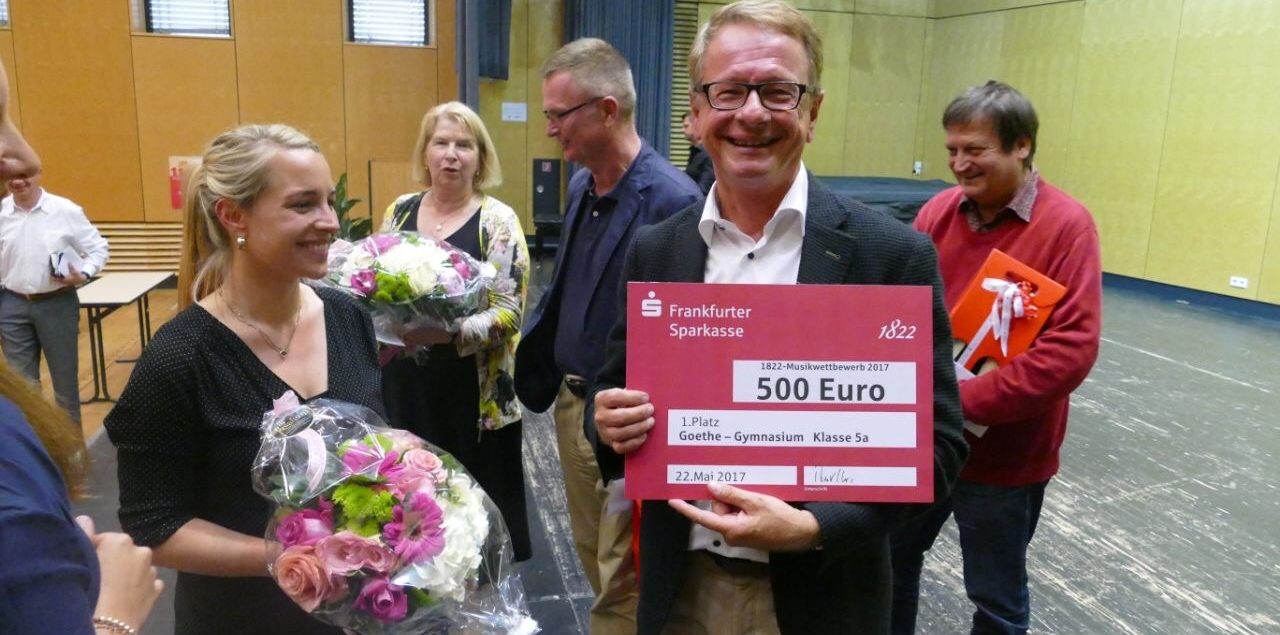 Die 5a nahm am 1822-Musikwettbewerb teil, der von der Hochschule für Musik und Darstellende Kunst und der Stiftung der Frankfurter Sparkasse veranstaltet wird und wurde für ihren Beitrag „Mainträume“ mit dem ersten Preis in der Kategorie Klassen 5-10 ausgezeichnet. Die Jury hob insbesondere die Kreativität der knapp achtminütigen Szene mit Musik hervor sowie die Tatsache, dass die Schülerinnen und Schüler völlig selbstständig auf der Bühne agierten. Beim Preisträgerkonzert im Dr. Hoch’s Konservatorium nahmen insgesamt sechs Ensembles teil, darunter die mit dem dritten Platz bewerteten Ensembles der Altersgruppe Klassen 5-10, die Leibnizschule Frankfurt-Höchst und die Weißfrauenschule.