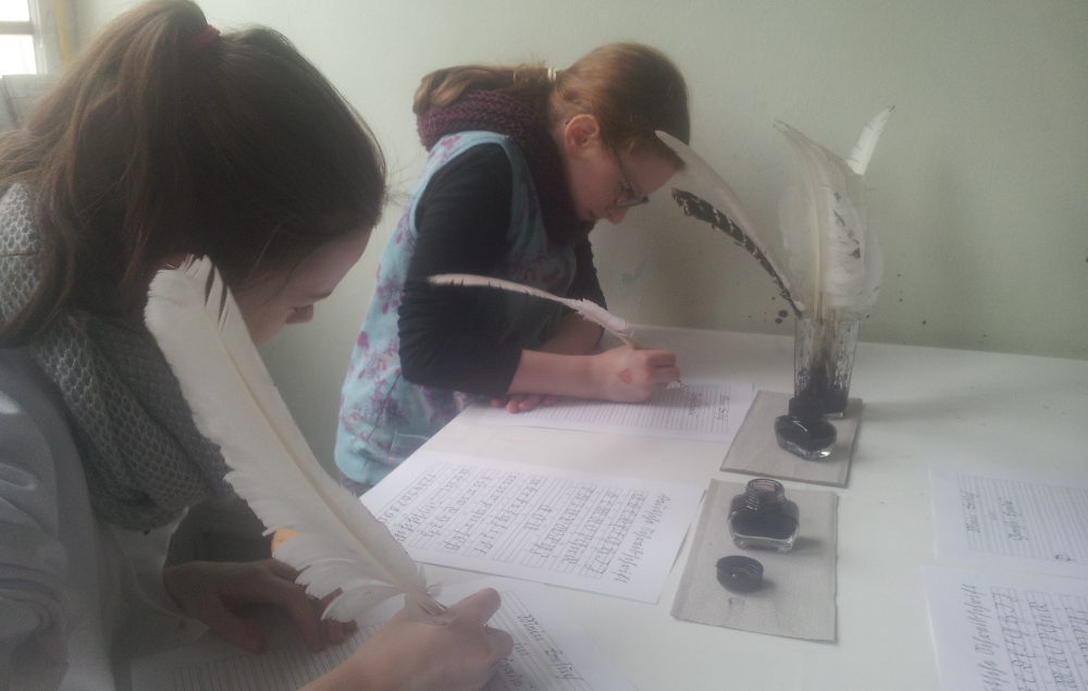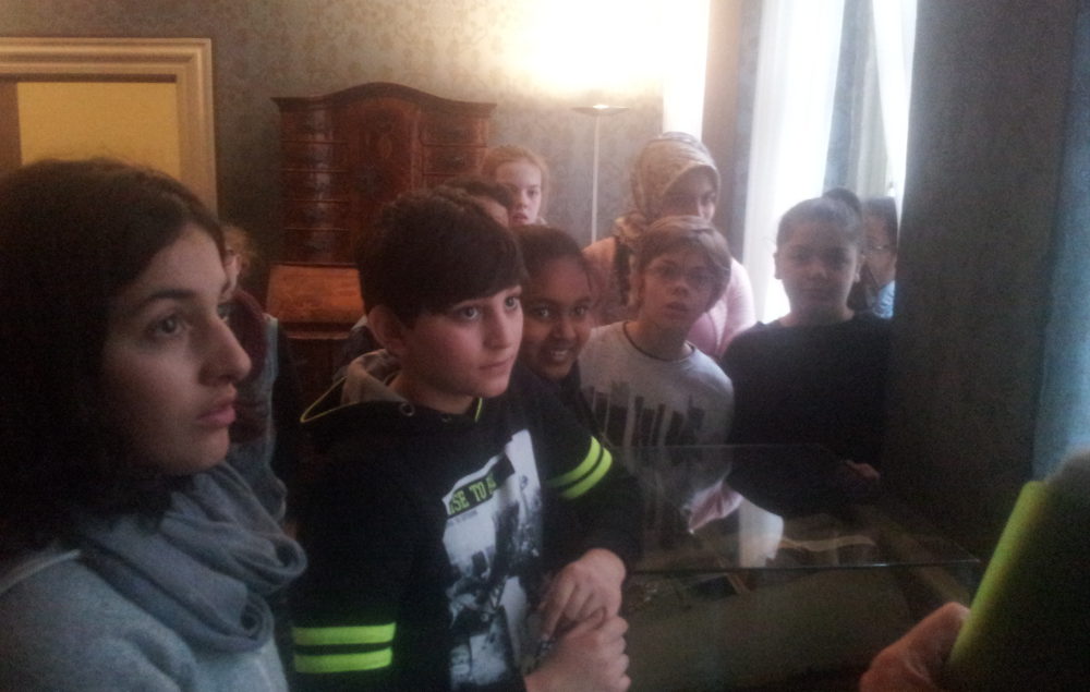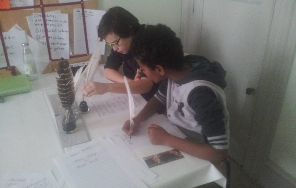 Wir beginnen mit dem Gästezimmer, in das die Gäste als erstes geleitet wurden – genauso wie wir. In diesem Zimmer befinden sich Sachen von Johann Wolfgang von Goethe, die er von Weimar aus seinen Eltern schickte. Sie erinnerten die Eltern an Goethe.