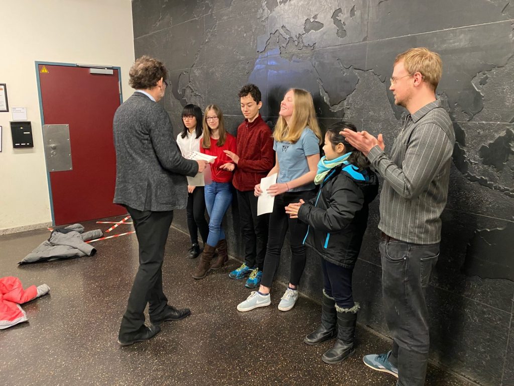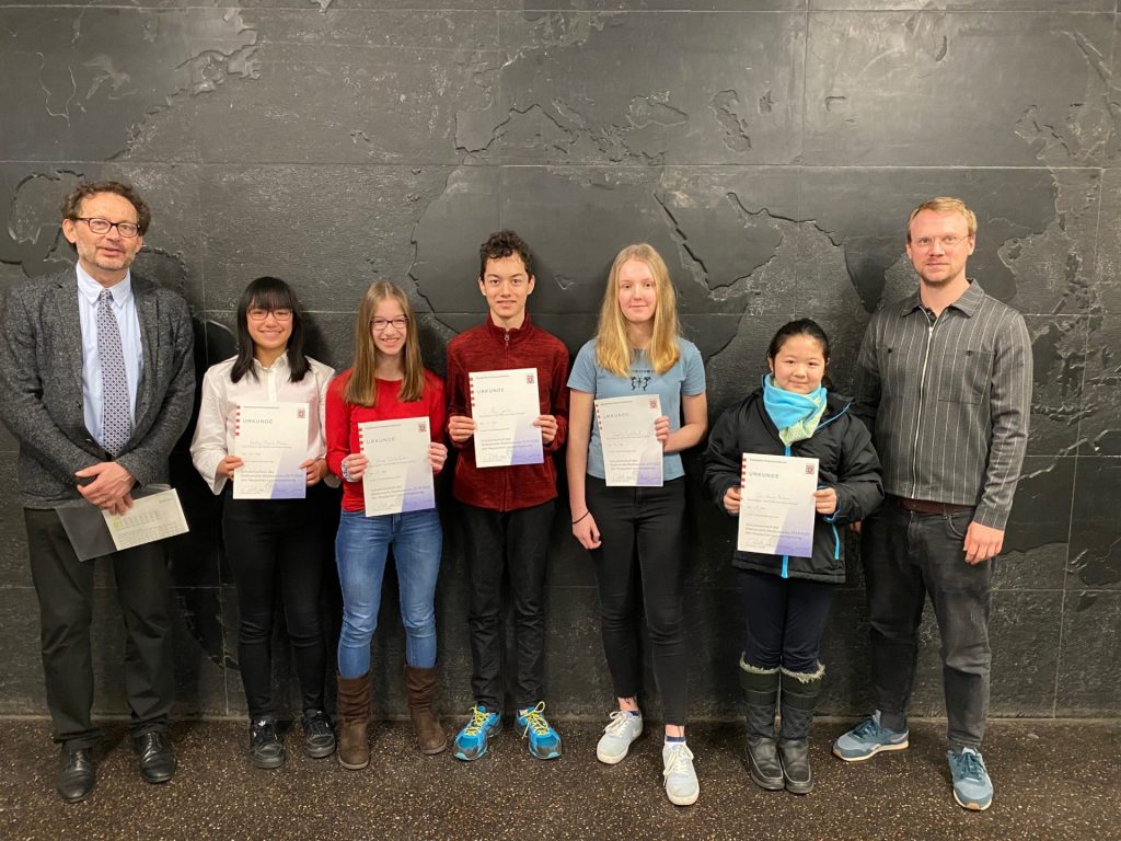 Tolles Abschneiden der diesjährigen Schulsieger des Mathematikwettbewerbs: Kathy, Anna, Ray, Sophie und Shintaro. Herzlichen Glückwunsch