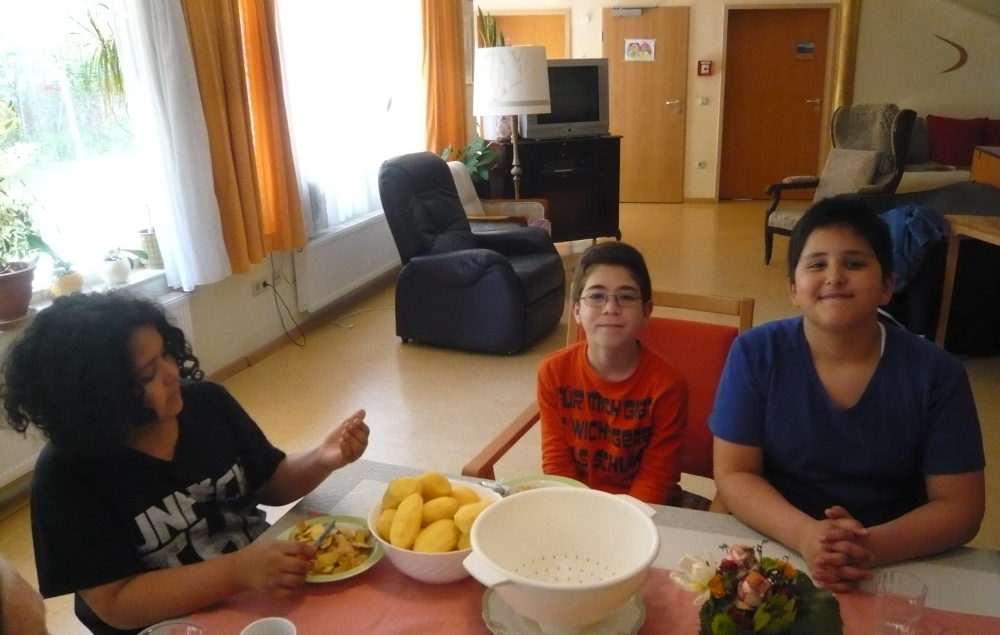 „Wir aus der 5c haben nach der Führung in den vier Wohngemeinschaften im Gartenhaus geholfen. Zum Gartenhaus gehört ein großer schöner Garten, um den sich eine Gärtnerin kümmert. Einige von uns haben geholfen, das Mittagessen zuzubereiten, andere haben im Garten mit einigen älteren Menschen Fußball gespielt. Zwei von uns haben mehrere Runden Mensch ärgere Dich nicht gespielt. Es hat den Jungs der 5c sehr viel Freude bereitet, beim Boy’s Day dabei gewesen zu sein. Zwei von uns haben sogar gefragt, ob sie öfter kommen und helfen können.“