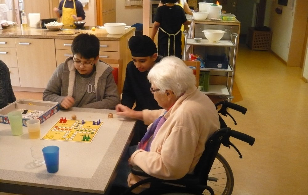 „Am Ende, als die Bewohner beim Mittagessen waren, haben wir mit Frau DuMesnil und Frau Holtorf, die uns den Tag über begleitet und uns geduldig viele Fragen beantwortet haben, über den Tag und unsere Erlebnisse gesprochen. So erfuhren wir z.B. wie man Altenpfleger wird, was man verdient und welche Aufgaben man ausführt.“