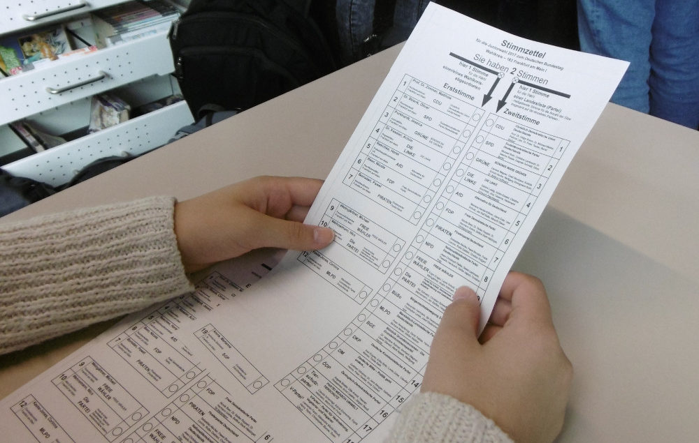 Das Ergebnis der schulinternen Wahl wurde zusammen mit den Wahlergebnissen vom 24. September 2017 ausgehängt. Die Schülerinnen und Schüler standen Schlange, um den Ausgang beider Urnengänge vergleichen zu können.