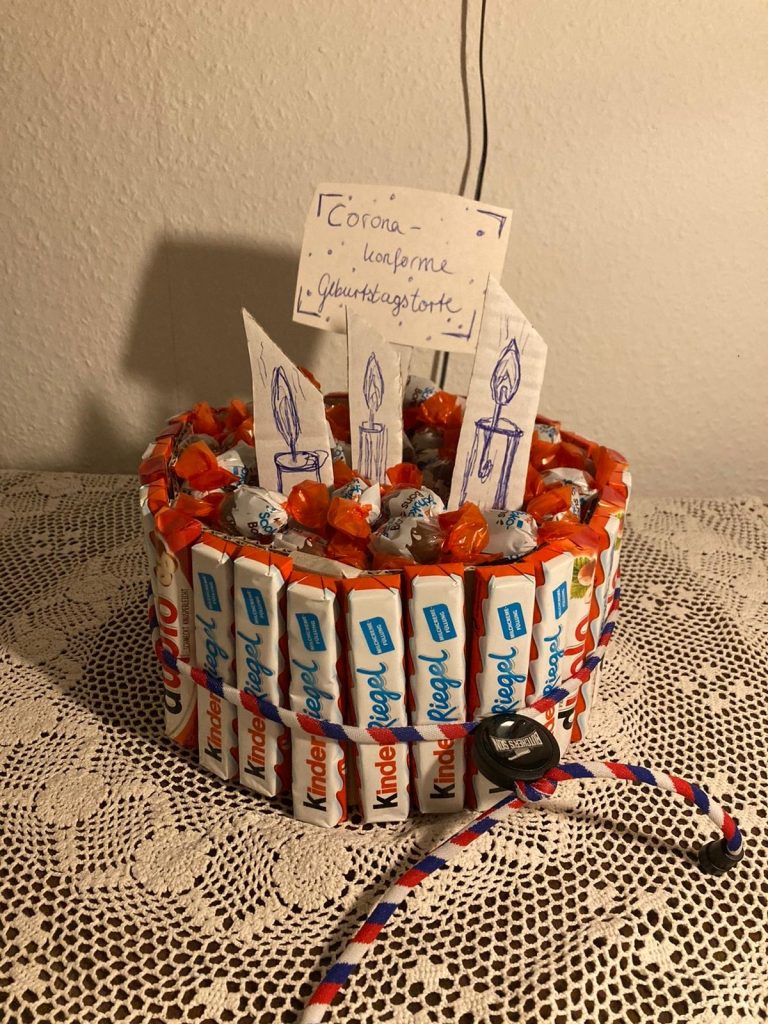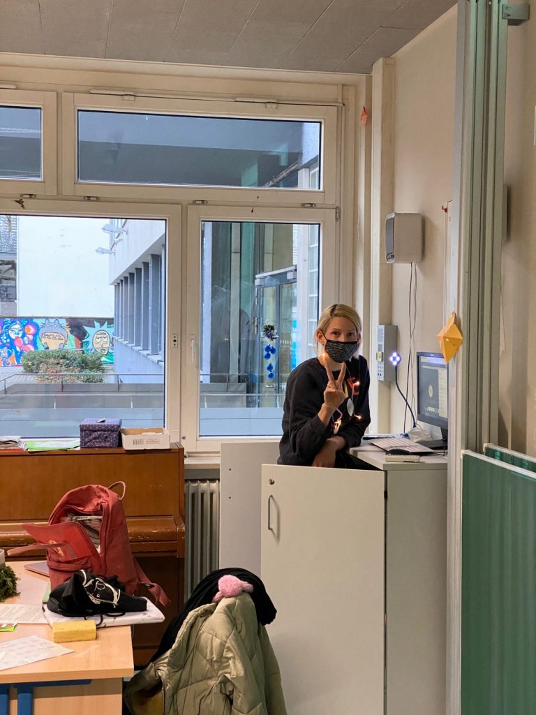 So feiert das Goethe den Geburtstag der Ganztagskoordinatorin Frau Heidt. Kreativität hilft auch bei Corona.