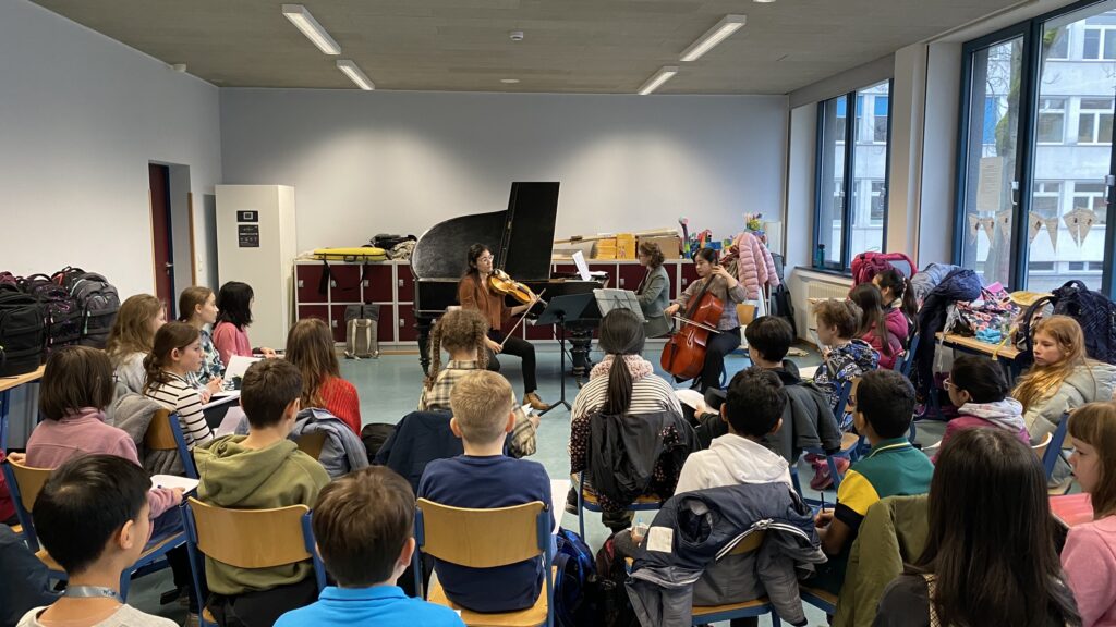 Am 18.03.2024 fand in der 5a ein Kammermusikworkshop in Zusammenarbeit mit Studierenden und Alumni der HfMDK Frankfurt statt. Das Magnus Trio mit Mariko Windecker (Violoncello), Tania Cornejo (Viola) und Linda Grizfeld (Klavier)…