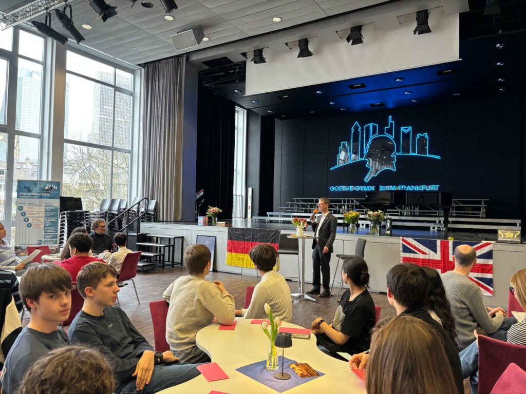 Feierstunde zum 50jährigen Bestehen des England-Austauschs 50 Jahre Austausch zwischen der Anglo-European school und dem Goethe-Gymnasium – das wurde am 13.03.2026 gebührend gefeiert: Die Schulleiterin Frau Dr. Ute Utech begrüßte die Feiergesellschaft…