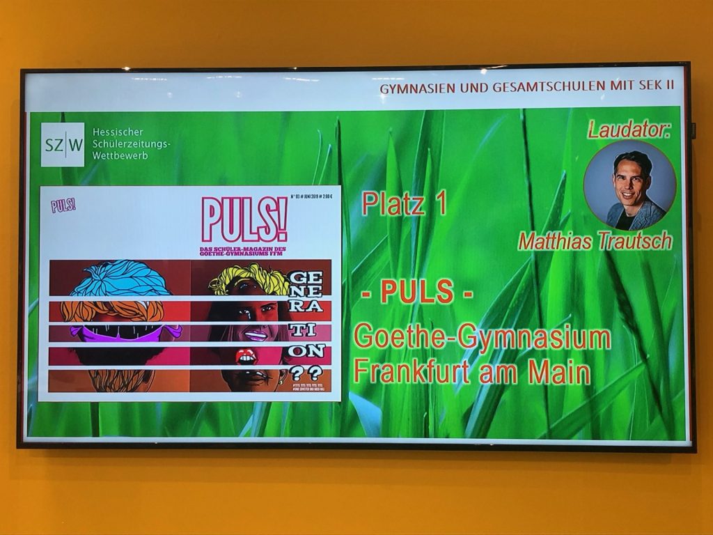 PULS gewinnt den Hessischen Schülerzeitungs-Wettbewerb 2019Nicht nur Norwegen war in diesem Jahr Gast auf der Buchmesse… auch die Redaktion des Schüler-Magazins PULS war auf die Buchmesse eingeladen – und zwar zur diesjährigen Verleihung des hessischen Schülerzeitungswettbewerbs, ausgerichtet… 17. Oktober 2019