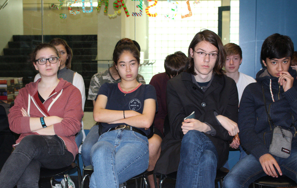 Welchen weiteren Einfluss die SED auf ihr Leben gehabt hatte, warum sie noch im März 1989 geflohen war und was sie als Erinnerungsstücke im Gepäck hatte, erzählte Frau Rothe in zwei Stunden, die für alle wie im Flug vergangen waren. Als Dank überreichten die Schülerinnen und Schüler noch ein Päckchen Westschokolade.