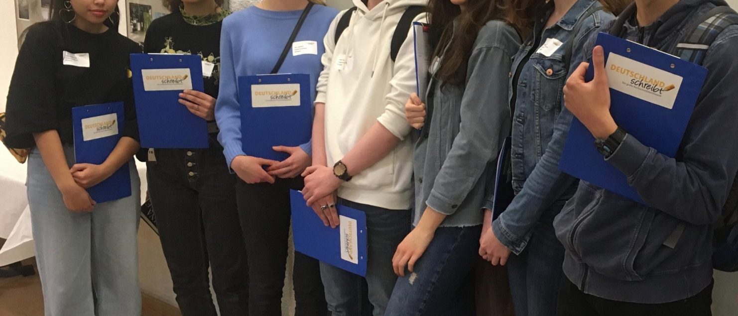 Am Mittwoch, 4. März 2020, fand in der Schillerschule in Sachsenhausen das Finale des diesjährigen Diktatwettbewerbs „Frankfurt schreibt“ statt. Das Goethe-Gymnasium war wieder sehr gut vertreten: Unser wackeres Team bildeten sieben Schülerinnen und Schülern der E-Phase, drei Lehrkräfte und ein Vertreter der Eltern. Thema des schweißtreibenden Diktats mit dem Titel „Jedes Dippsche find sei Deckelsche“ war die Frankfurter Dippemess. Besonders gut geschlagen haben sich dabei Hans-Dieter Bunger und Dr. Jens Kreutzer, die sich in der Kategorie Lehrkräfte den zweiten Platz teilten und dem Goethe-Gymnasium damit erneut einen Doppelerfolg bescherten. Sie qualifizierten sich so für das große Finale am 16. Juni, das bei uns im altehrwürdigen Goethe-Gymnasium stattfindet. Nach dem anstrengenden Schreiben wurden alle Tüchtigen dann vor der Kulisse eines Rummelplatzes mit Kirmesköstlichkeiten belohnt, an denen sich alle mit vergnügten Mienen gütlich taten.