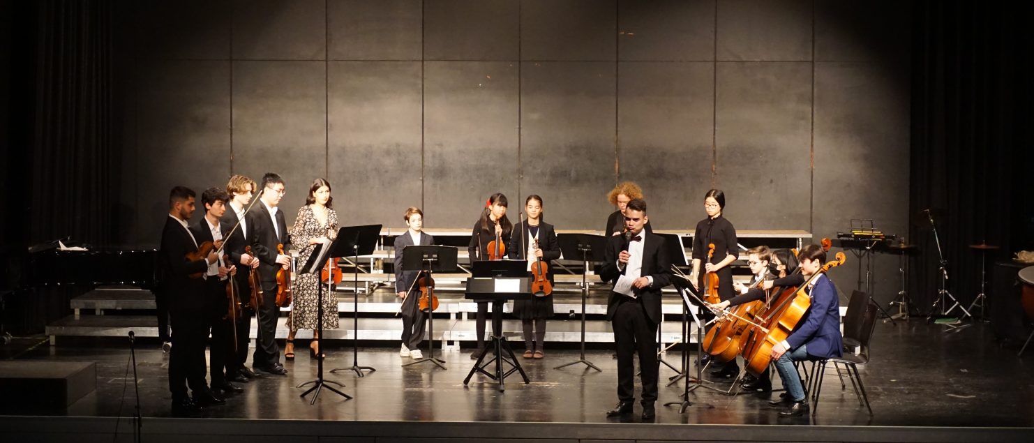 Das Kammerorchester, das sich in den letzten Jahren unter der Leitung von Dr. Felix Steiner entwickelt hatte, spielte verschiedene Werke klassische Werke, darunter auch ein Sinfonie-Arrangement eines Ensemblemitglieds.