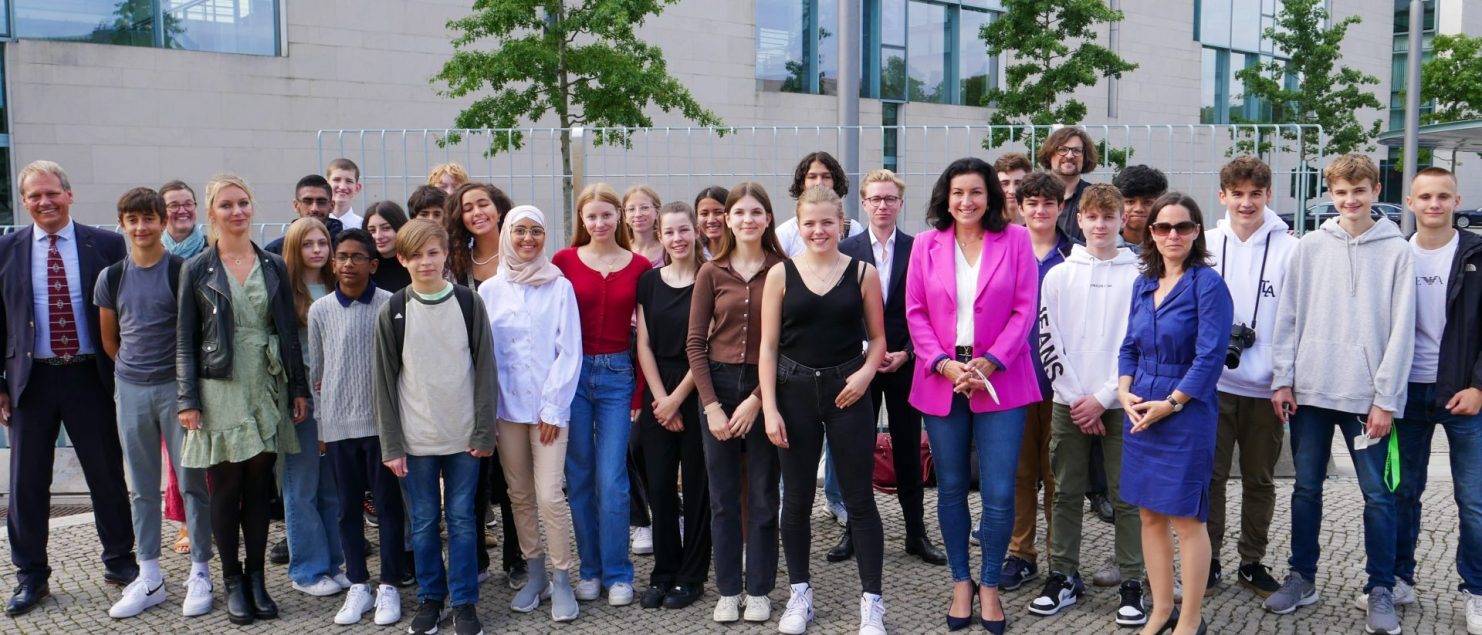 Die Klasse 9d hat den ersten Platz beim diesjährigen Jugendwettbewerb „myDigitalWorld2021“ unter der Schirmherrschaft der Staatsministerin für Digitales, Dorothee Bär, erzielt und die gewonnene Klassenfahrt nach Berlin vergangenen Monat angetreten.