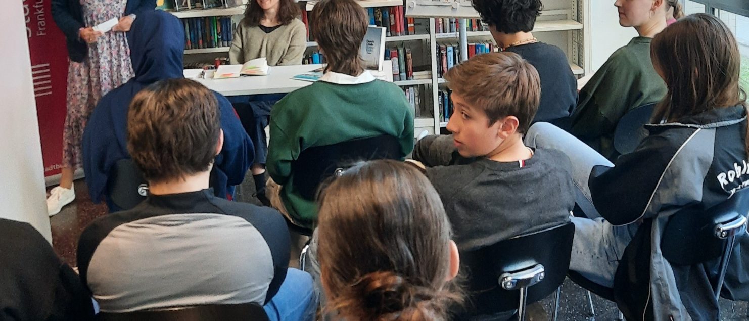 Die Lesung wurde möglich dank des Teams von „Frankfurt liest ein Buch“, der Schulbibliothekarischen Arbeitsstelle der Stadtbücherei sowie des Fördervereins des Goethe-Gymnasiums. Und natürlich ganz herzlichen Dank an Frau Ohde für diese bereichernde Veranstaltung!