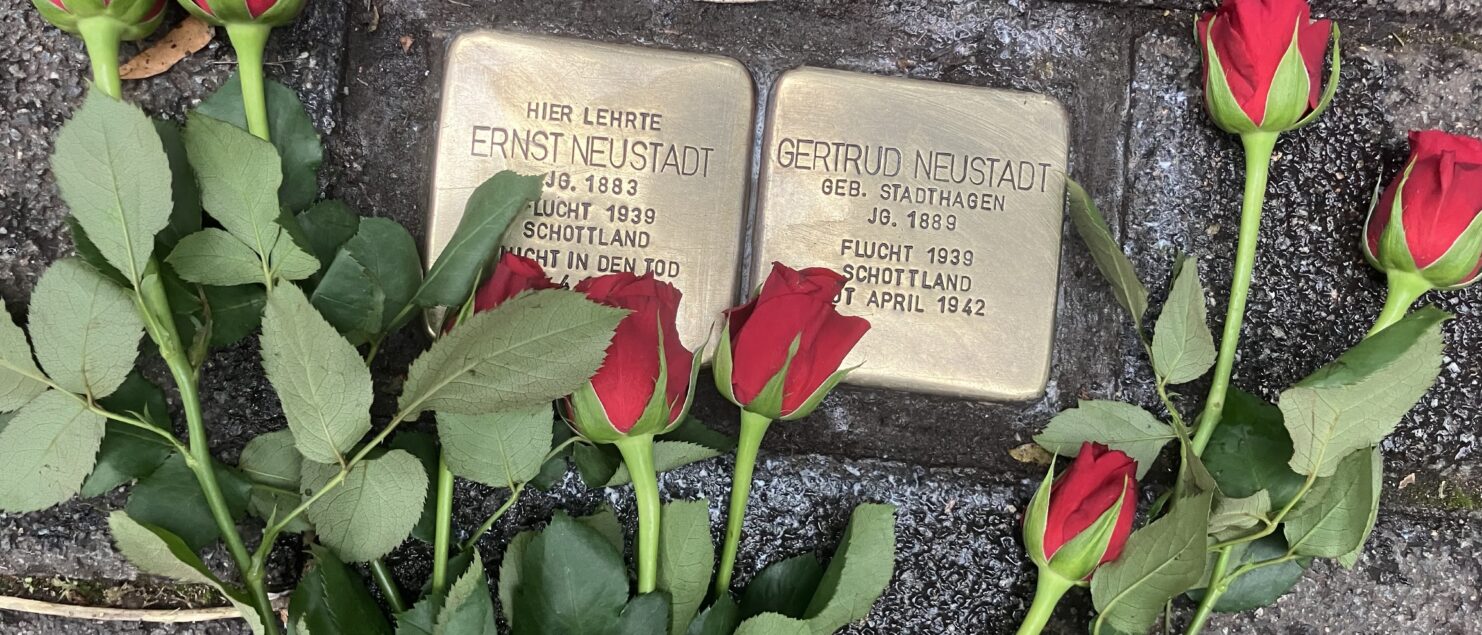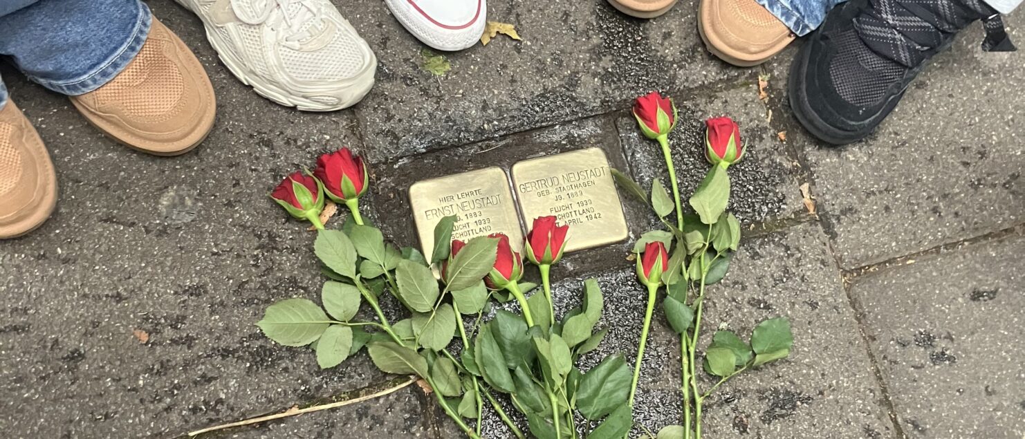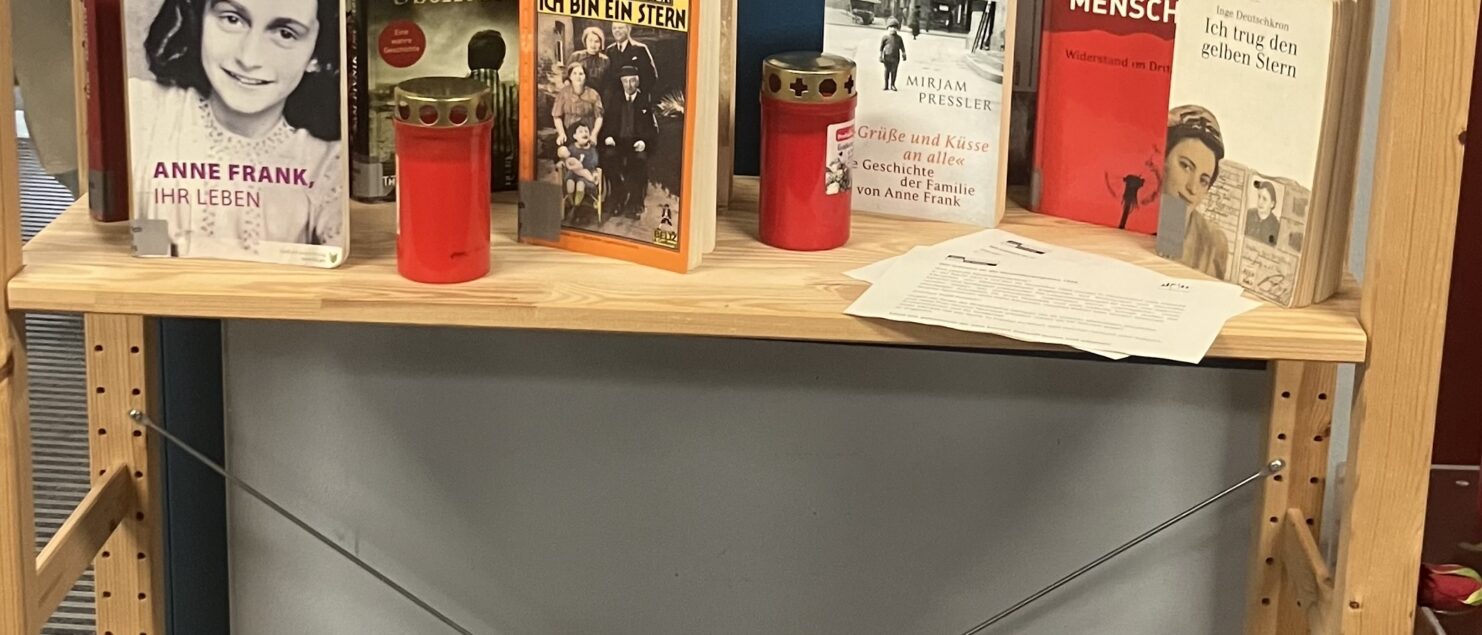 Um an dieses Ereignis zu erinnern, hat die AG „Schule mit Courage“ die Lernenden in der großen Pause mit Flyern und einem Bücherstand der Schulbibliothek über das Novemberpogrom informiert. Eine Klasse hat die Stolpersteine für Frau und Herrn Dr. Neustadt gereinigt. Engagierte Lernende haben nach der achten Stunde rote Kerzen neben die vielen Stolpersteine rund um die Schule gelegt, um auch außerhalb der Schulgemeinde an das Geschehene zu erinnern. Hierdurch wollen wir ein Zeichen gegen Antisemitismus und für Solidarität setzen.