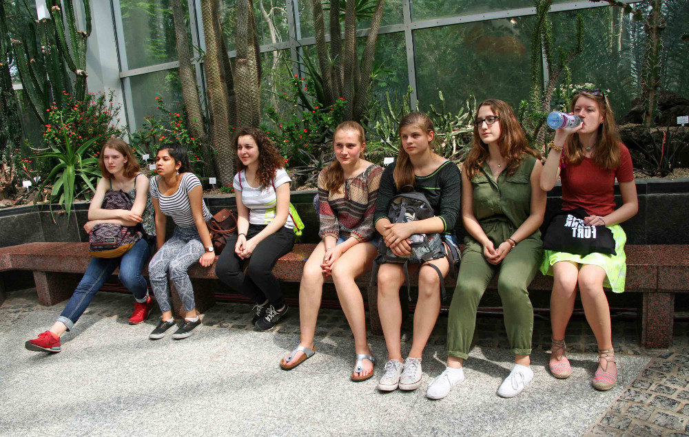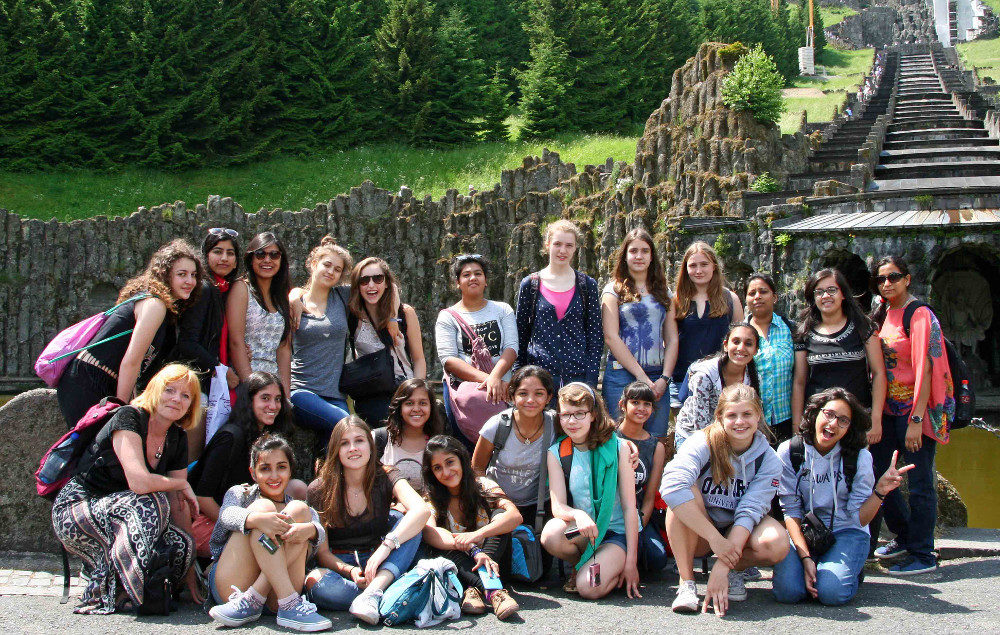 Anfang Juni waren 12 Schülerinnen mit ihren beiden Begleitlehrerinnen am GG zu Gast. Neben einer Stadtführung, dem Besuch des Filmmuseums und vielen anderen Aktivitäten standen drei interessante Tagesausflüge auf dem Programm. Highlight war die Besichtigung der Wasserspiele in Kassel-Wilhelmshöhe.