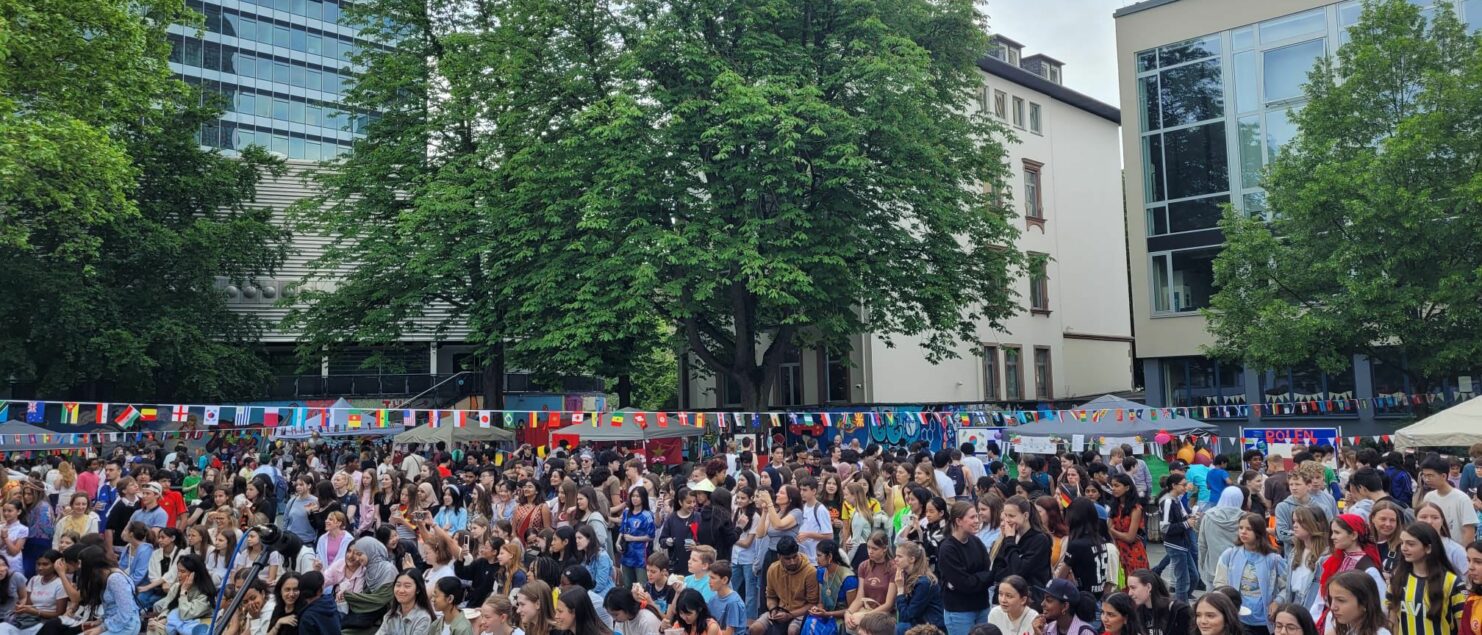 Am 15.05.2024 fand am Goethe-Gymnasium zum ersten Mal der International Day statt: Auf Initiative der Q2 Schülerinnen Parnian Saber Hamishegi, Kertina Gagar und Nejla Subasic, die die Idee für ihr CAS-Projekt im Rahmen ihres IB Programms entwickelt hatten, bereiteten über 100 SchülerInnen 20 Länderstände vor, an denen sie Kunst, Kultur, Gesang und Tanz der verschiedenen Heimat- und Identifikationskulturen präsentierten.