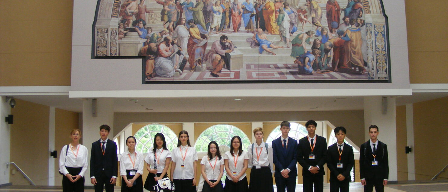 Auch dieses Jahr fand wieder die Japanaustauschfahrt zu unserer Partnerschule Tamagawa-Gakuen in Tokyo statt. Vom 26. September bis zum 13. Oktober flogen 11 Schülerinnen und Schüler mit Herrn Dr. Kreutzer und Frau Reifenberg nach Japan und opferten eine Woche Herbstferien dafür. Im März 2026 gibt es dann den Gegenbesuch der japanischen Austauschpartner in Frankfurt.