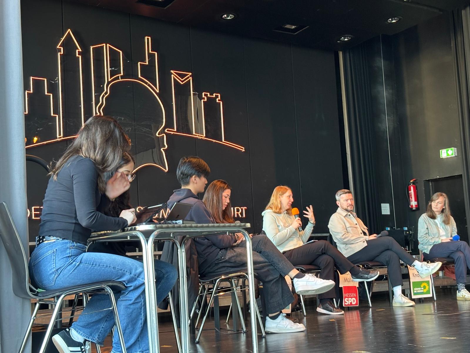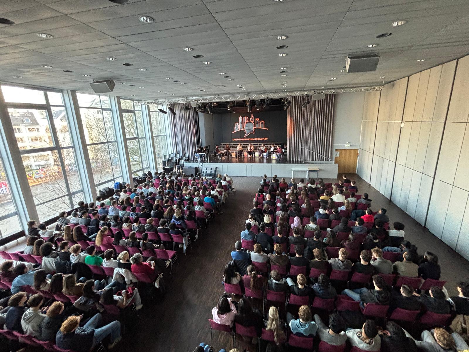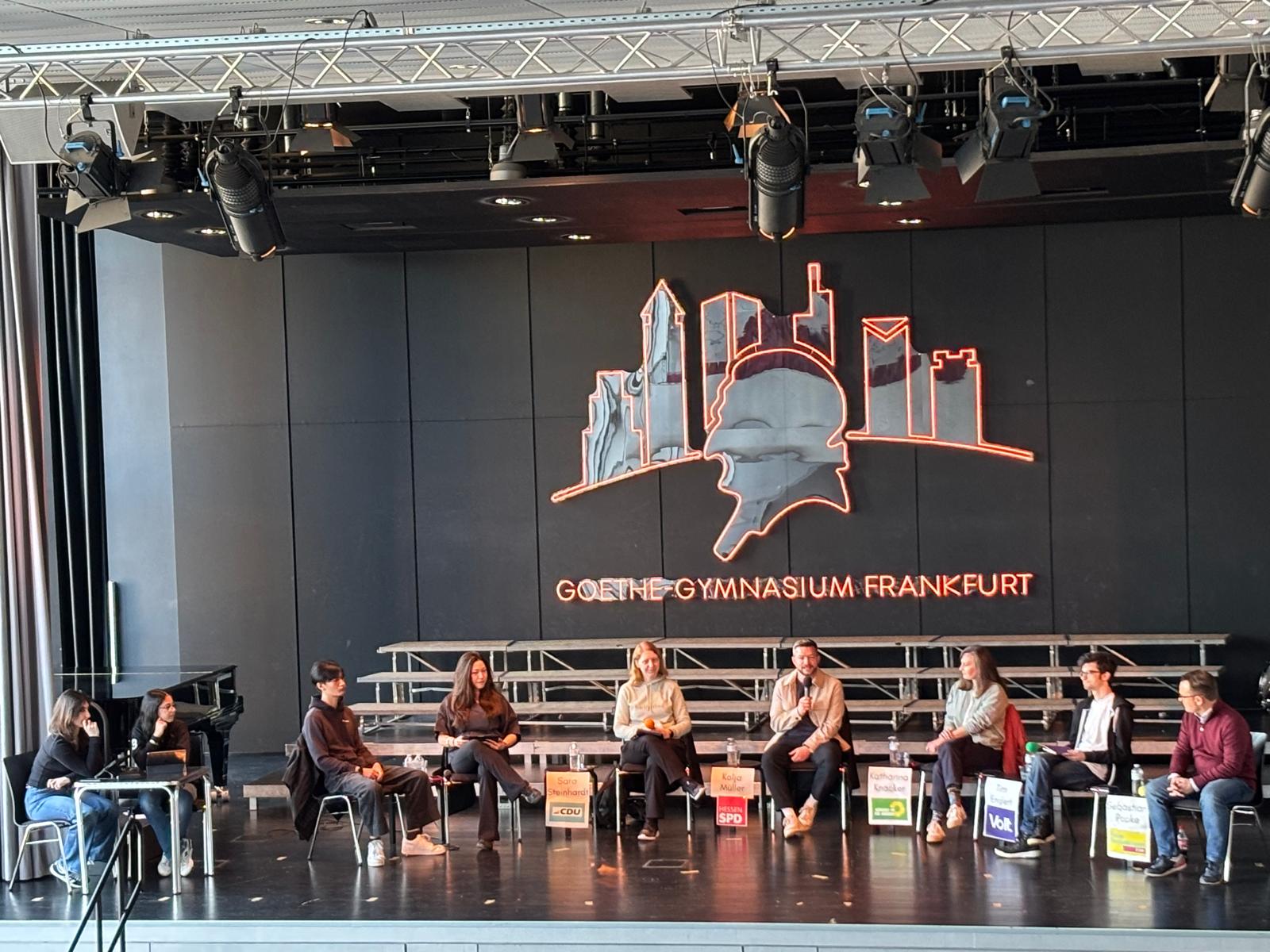 Am Dienstag, den 10.03.2026 verwandelte sich die Aula des GG in eine politische Arena. Kurz vor der hessischen Kommunalwahl am 15. März lud die Schülervertretung (SV) Vertreterinnen und Vertreter der großen Parteien ein, um über die Zukunft unserer Stadt zu debattieren. Auf dem Podium standen sich Repräsentanten von SPD, CDU, FDP, Grünen und VOLT gegenüber. AfD und Linke hatten kurz vor dem Termin abgesagt.