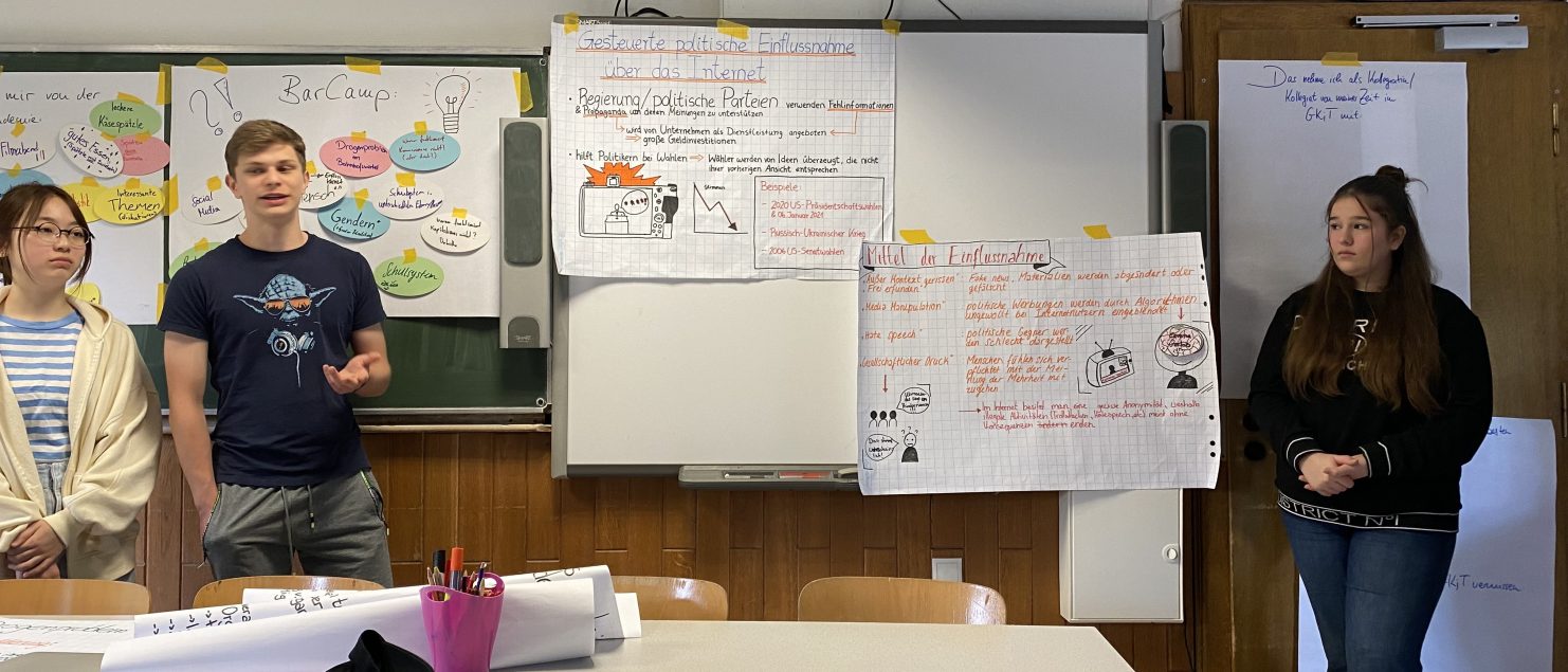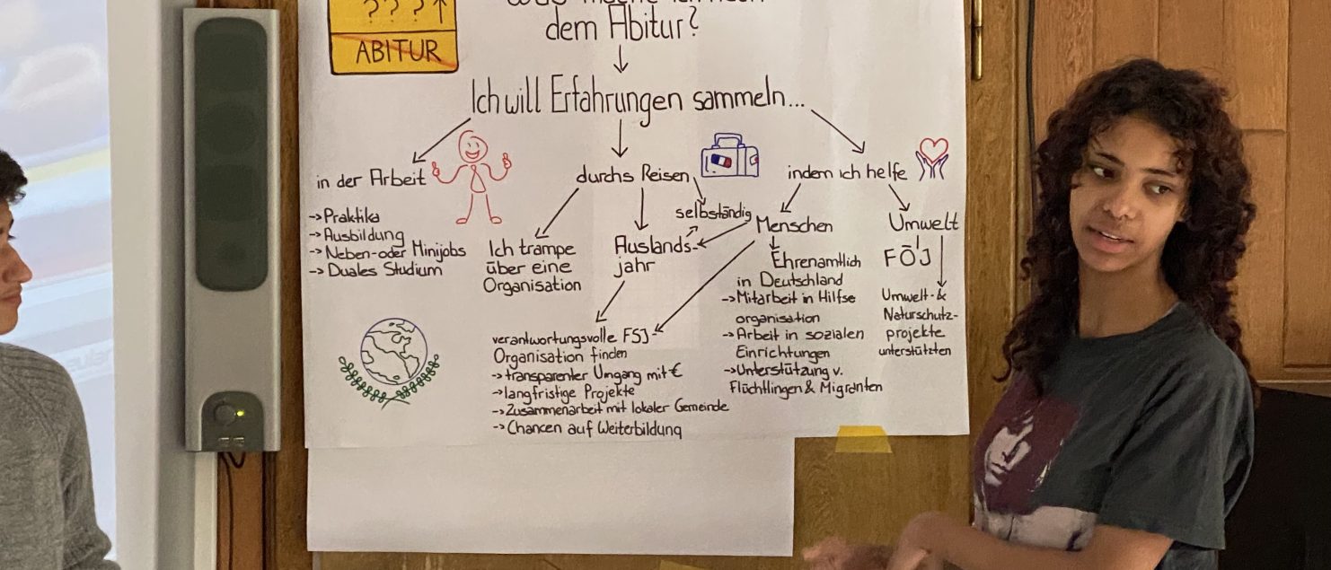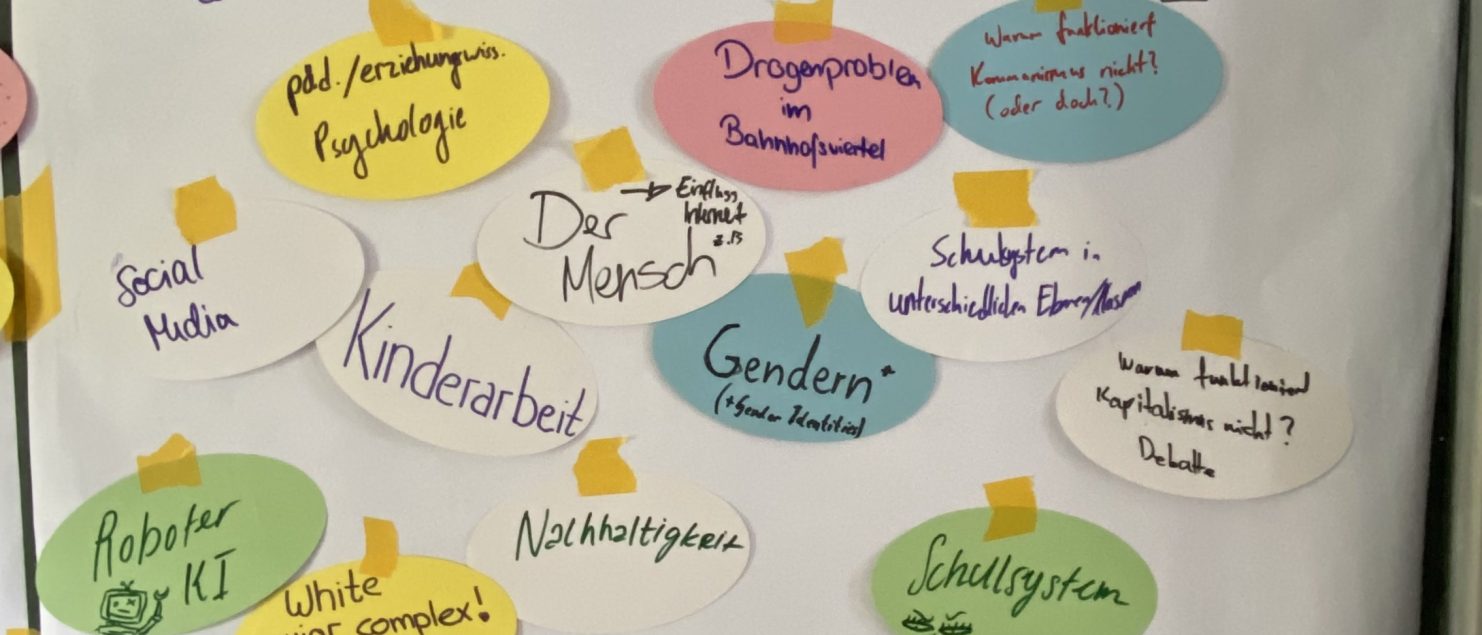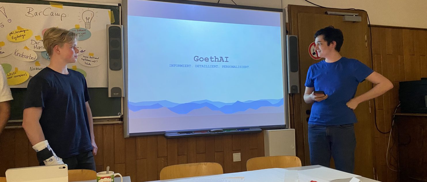 Als Schüler*innen des Goethe-Kollegs für junge Talente sind wir vor Kurzem noch ein letztes Mal ins Landheim gefahren, um nun einmal die Möglichkeit zu haben, an unseren eigenen Projekten zu arbeiten. Diese gestaltete sich durch die „Bar-Camp“-Methode. Hierbei hatten wir die Möglichkeit, uns die Themen selbst auszusuchen und uns die Arbeit selbst einzuteilen. Dadurch konnten wir sehr motiviert arbeiten, da jeder die Möglichkeit hatte, sich mit dem Thema zu befassen, was ihn wirklich interessiert. Darüber hinaus bot unsere Gruppe aber auch eine angenehme Umgebung, die es einem erlaubte, neue Ideen zu entwickeln und seine Fähigkeiten weiterzuentwickeln. Ich denke, das zeigt sich vor allem durch unsere verschiedenen Lösungsansätze, die wir für verschiedenste Themen entwickelt haben. Die einen haben sich eine KI namens „GoetheAI“ überlegt, die mit in unseren Unterricht eingebunden werden kann, während andere sich überlegt haben, wie man das Bahnhofsviertel familienfreundlicher machen kann. Zwar konnten wir in den drei Tagen nicht die perfekten Konzepte erarbeiten, haben durch den gegebenen Impuls jetzt aber viel Motivation, an unseren Ideen weiterzuarbeiten.