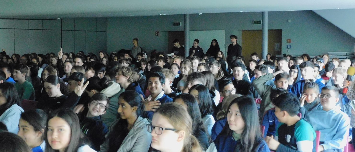 In der Rede unserer Schulleitung, Frau Dr. Utech, wurde deutlich, dass wir uns gegen jede Form der Diskriminierung einsetzen wollen, um ein gewaltfreies und respektvolles Miteinander zu fördern. Frau Becker, die Landeskoordinatorin des Netzwerks für Hessen, wies darauf hin, dassdie Auseinandersetzung mit Diskriminierung die Beschäftigung mit den eigenen Vorurteilen einschließt. Bei dieser Arbeit wird uns nun neben unserer Respektcoachin, Melihan Cinar, auch unsere Patin, Bîşenk Ergin, unterstützen, die seit vielen Jahren in der rassismuskritischen Bildungsarbeit tätig ist.