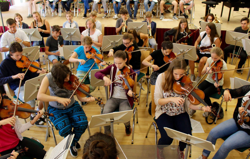 Bei dem ersten gemeinsamen Durchlauf des Werks zum Abschluss der ChOrchesterfahrt 2016 im Konzertsaal des Schlosses wurde schon auf erfreulichem Niveau musiziert. der erste Schritt ist getan. Nun bleiben die Proben in der Schule, um die daheim gebliebenen Schülerinnen und Schüler zu integrieren und das Werk für die Aufführung beim Weihnachtskonzert am 15. Dezember weiter zu erarbeiten.