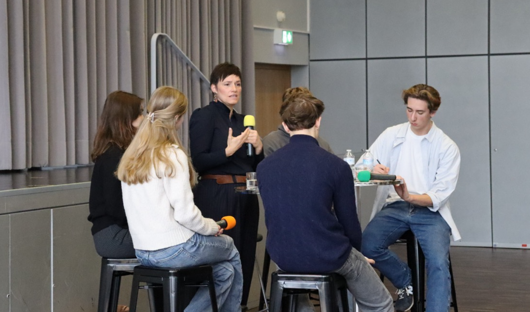 Wer sitzt heute noch am Lagerfeuer der Gesellschaft? Prof. Dr. Nicole Deitelhoff diskutiert mit Oberstufenschülerinnen und -schülern über die aktuelle Weltlage