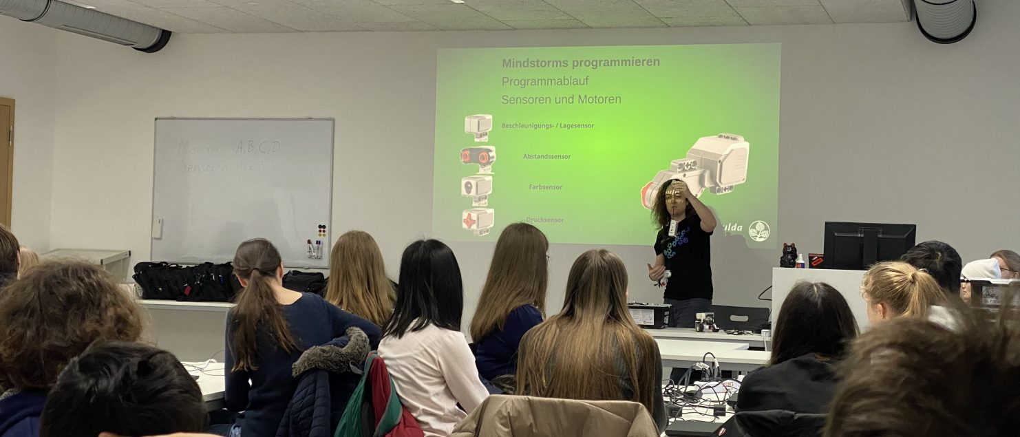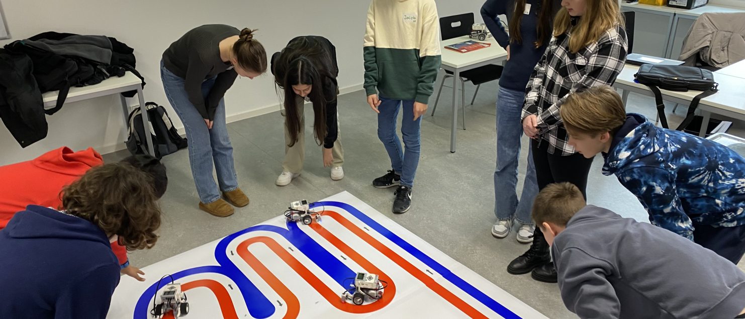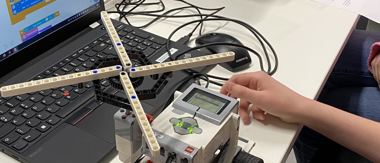 Wir sollten mithilfe von einem LEGO Mindstorms Programm Roboter aus Lego, die man durch Sensoren steuern konnte, so programmieren, dass sie eine Rennstrecke problemlos fahren konnten, ohne von der Strecke abzukommen. Am Ende hatte jeder von uns einen leistungsfähigen Roboter gebaut, der durch den Weg fahren konnte.