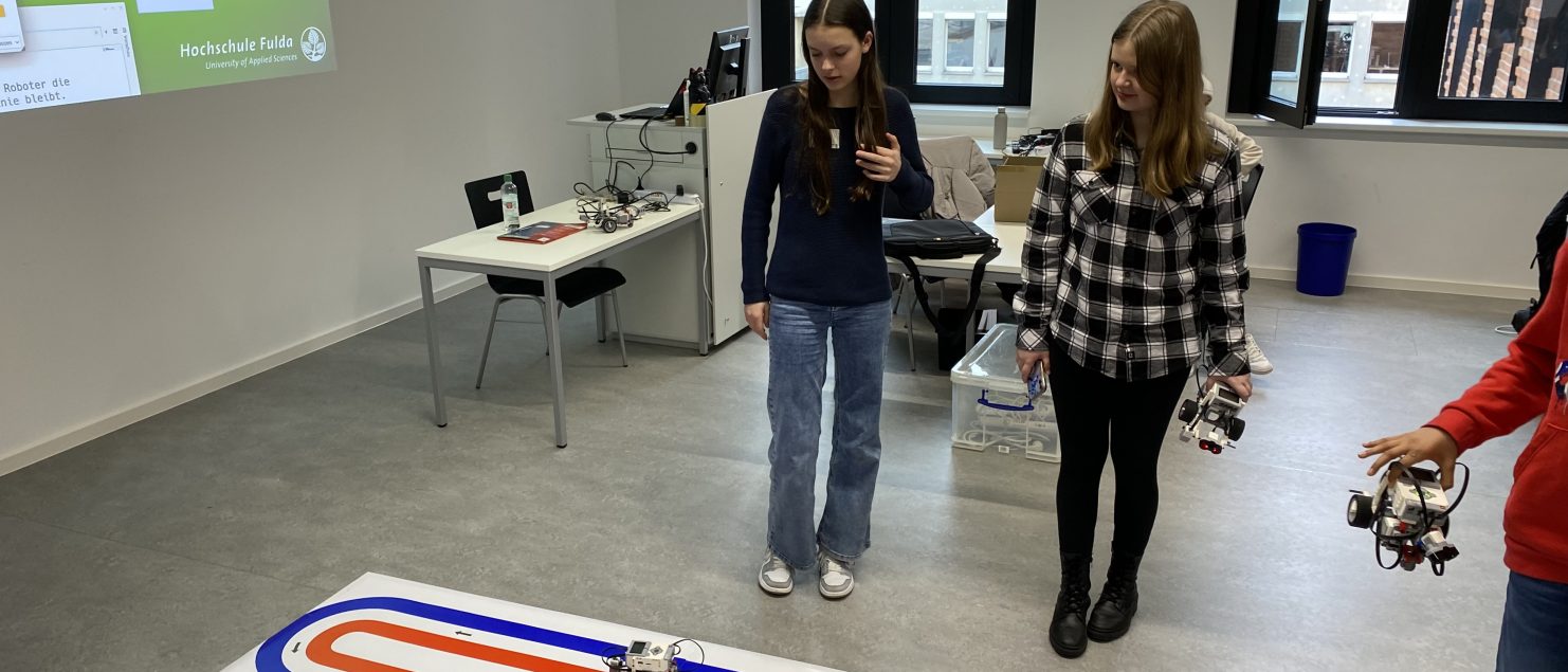 Am 13.03.23 um 7:00 Uhr früh haben wir uns am Hauptbahnhof getroffen. Allesamt waren aufgeregt, was wir denn nun heute machen würden. Dann um etwa 7:30 Uhr kam unsere Bahn und wir sind 1,5 Stunden nach Fulda zur Fachhochschule gefahren. Dort angekommen wurden wir auf dem Campus herzlich begrüßt und in einen großen, weißen Raum geführt. Dort haben wir Namensschilder mit kleinen Zahlen bekommen und wurden dann schließlich durch diese Nummern in Zweiergruppen eingeteilt. Danach wurde uns der Tagesablauf und natürlich das Thema präsentiert.