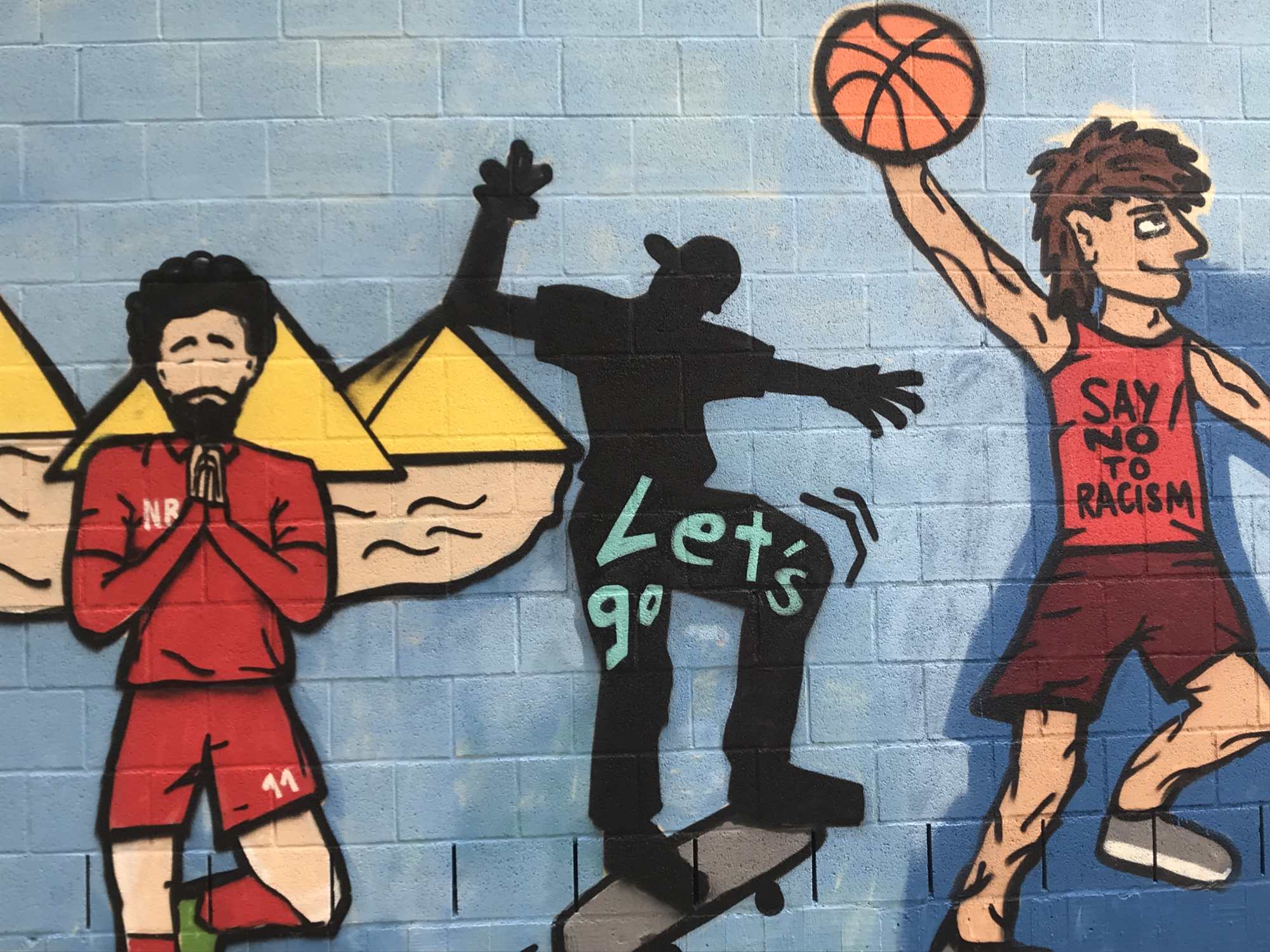Seit drei Wochen arbeitet die gesamte E-Phase an einem Graffiti Projekt. Hierbei sollten wir uns ein Motiv passend zum Thema Sport überlegen und unsere Vorgehensweise, sowie unsere Überlegungen dazu dokumentieren.
