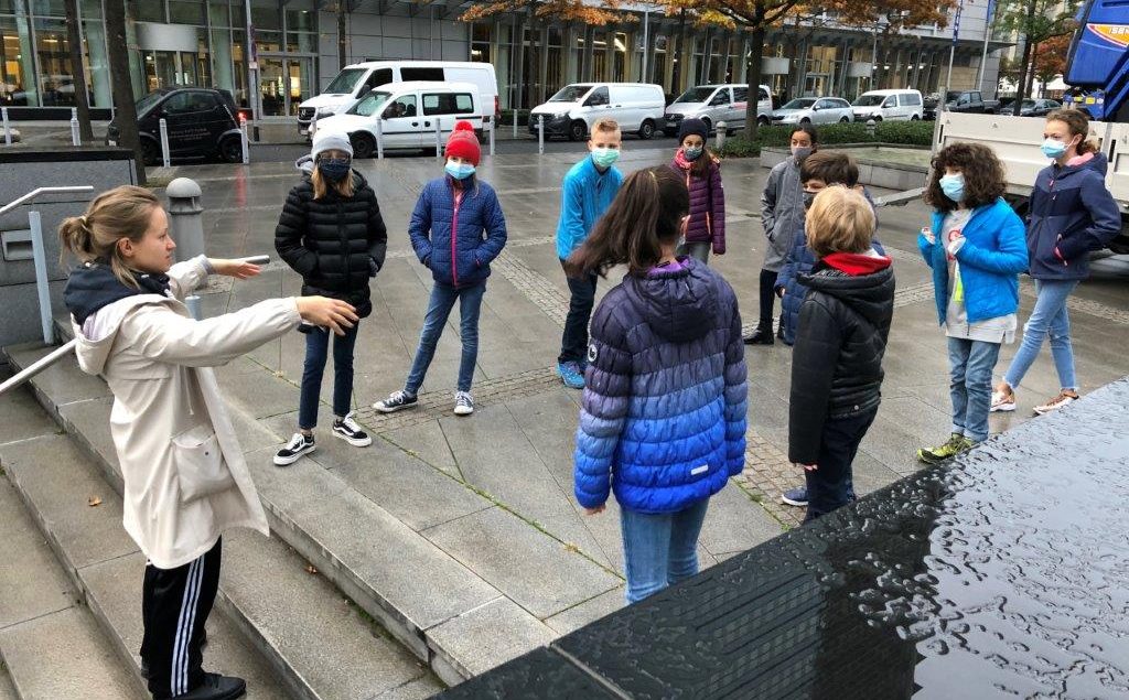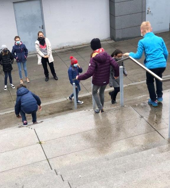 Der Tanzworkshop „Perspektivwechsel“ fand an 7 Mittwochvormittagen nach den Herbstferien im Oktober und November 2020 statt. Hierfür waren immer 10 Schüler*innen mit den Tanzkünstlerinnen Hannah Dewor und Ewelina Zielonka an zwei Mittwochen während der Unterrichtszeit in der näheren Umgebung der Schule und der Messe unterwegs. Sie haben den öffentlichen Raum tänzerisch und ortsspezifisch erkundet und mit den S* verschiedene Choreographien entwickelt. Impulse zu den Orten wurden von 2 Senior*innen aus Frankfurt gegeben. Das Projekt wird unterstützt und gefördert vom Internationalen Bund und der Stadt Frankfurt.