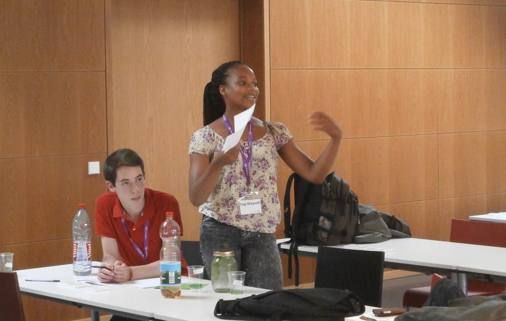 Wir, Tiaji Maynell Sio und Fabian König, vertraten bei diesem Projekt das Goethe-Gymnasium. Das Ergebnis der dreitätigen intensiven Arbeitsphase ist das Konzept ‚GoetheGoesGreen‘, welches das Ernährungs- und Umweltbewusstsein der Schülerinnen und Schüler stärken soll; dieses entwickelten wir in enger Zusammenarbeit mit den anderen Jugendlichen und mit Hilfe der kompetenten Betreuer und Gastredner. Während des gesamten Projektes standen uns nicht nur die Betreuer Claudia Sommer und Konrad Dorenkamp von der polytechnischen Gesellschaft mit tatkräftiger Unterstützung zur Verfügung, sondern wir erhielten auch die einzigartige Möglichkeit uns mit Stadtteilbotschaftern und zahlreichen Experten und Führungspersönlichkeiten auf den verschiedensten Ebenen auszutauschen.
