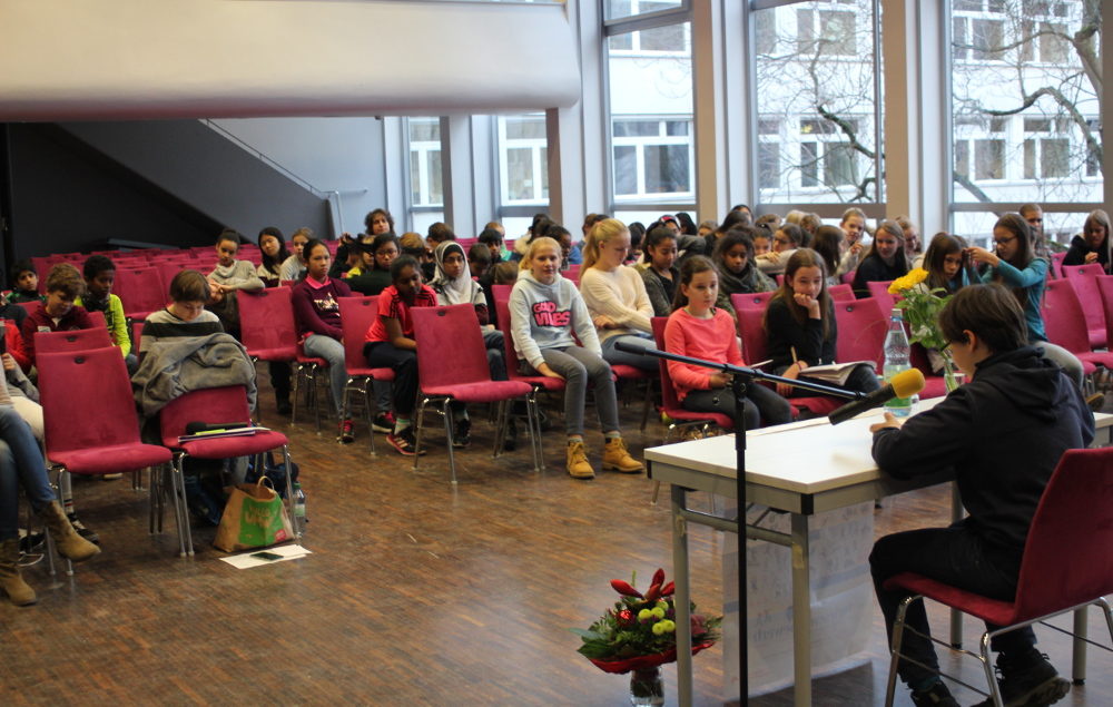 Am 13.12.2017 trafen sich die Klassensiegerinnen Emily und Anna (6a), Aylin (6b), Nejla und Kertina (6c), Emma und Nicole (6d) und der Klassensieger Philipp (6b) in der Aula des Goethe-Gymnasiums zum Schulentscheid des diesjährigen Vorlesewettbewerbs. Vor dem gesamten Jahrgang 6 und einer Jury aus Deutschlehrerinnen und -lehrern sowie der Bibliothekarin lasen alle mit großer Begeisterung vor und konnten die Jury mit ihren Vorträgen so überzeugen, dass es am Ende ein Kopf an Kopf-Rennen war. Schließlich gewann Emily aus der 6a mit dem Buch von Angie Westhoff: „Das Buch der seltsamen Wünsche“ mit knappem Vorsprung. Sie wird unsere Schule beim Regionalentscheid, der voraussichtlich Anfang Februar stattfinden wird, vertreten.