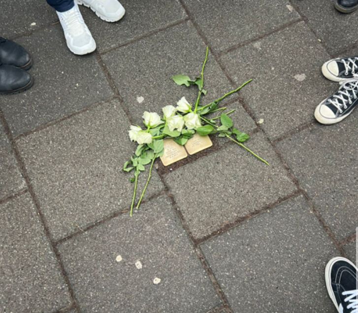 Am 27. Januar 2025 jährte sich die Befreiung des Vernichtungslagers Auschwitz-Birkenau durch die Rote Armee zum achtzigsten Mal. Die Lernenden der achten Klasse von Frau Völlinger haben sich im Ethikunterricht mit diesem Thema anhand von Impulskarten beschäftigt, die mit eindrücklichen Fotos und Geschichten vom Leben in und um Auschwitz berichten. Anschließend reinigten sie die zwei Stolpersteine vor dem Hauptgebäude. Die Steine erinnern an den ehemaligen Direktor des Goethe-Gymnasiums, Herrn Dr. Neustadt und an seine Frau Gertrud Neustadt. Sie verloren aufgrund der Nationalsozialisten Beruf und Heimat und starben verarmt im Exil.