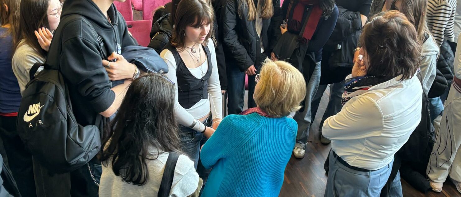 Eine Stecknadel hätte man fallen hören können – so still war es am 10.03.2026 in der Aula. Die Klassenstufen 9 und 10 hatten sich vollständig versammelt, um den Schilderungen der Zeitzeugin und Holocaustüberlebenden Eva Szepesi zuzuhören.